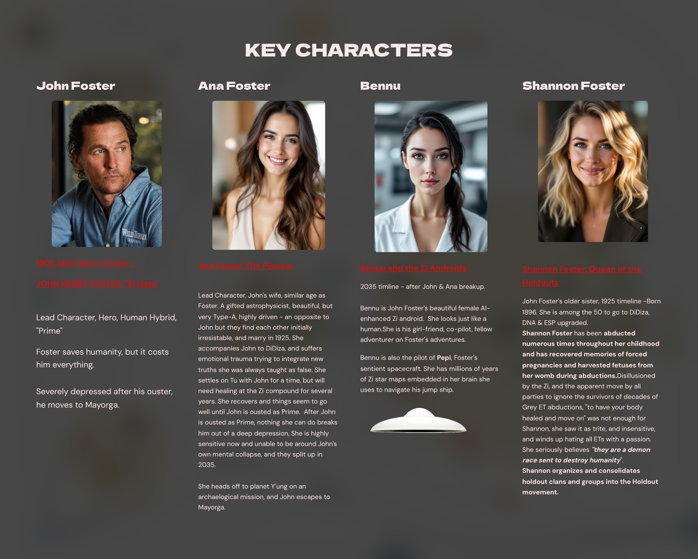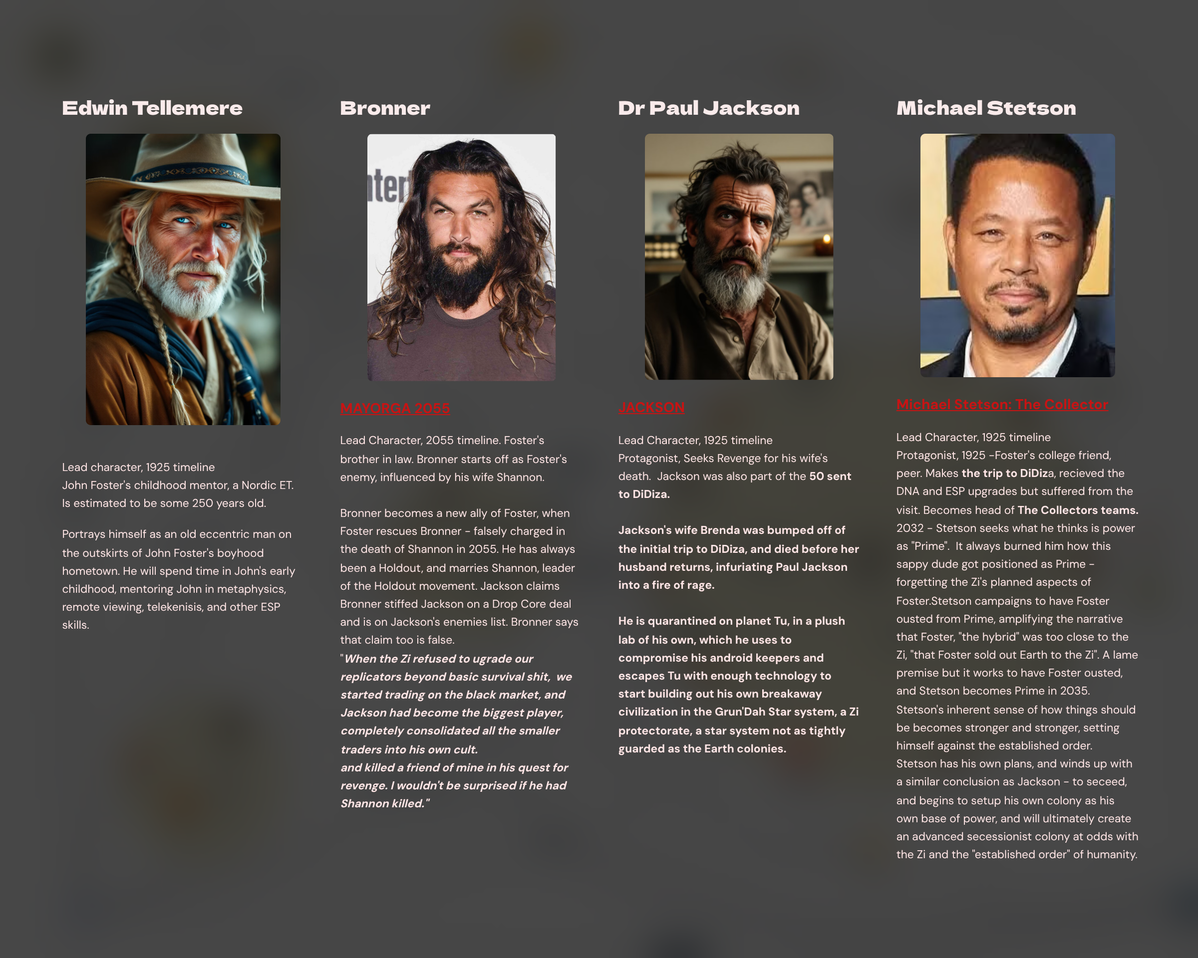 Actors suggested in these characters are strictly for character enhancement in this presentation, and Matthew McConaughey, Terrence Howard, Jason Momoa, and any other actors suggested in these characters have not yet attached themselves to this project and have not endorsed this project and the images of them are only used in this context as an actor character archetypes to better explain the characters.